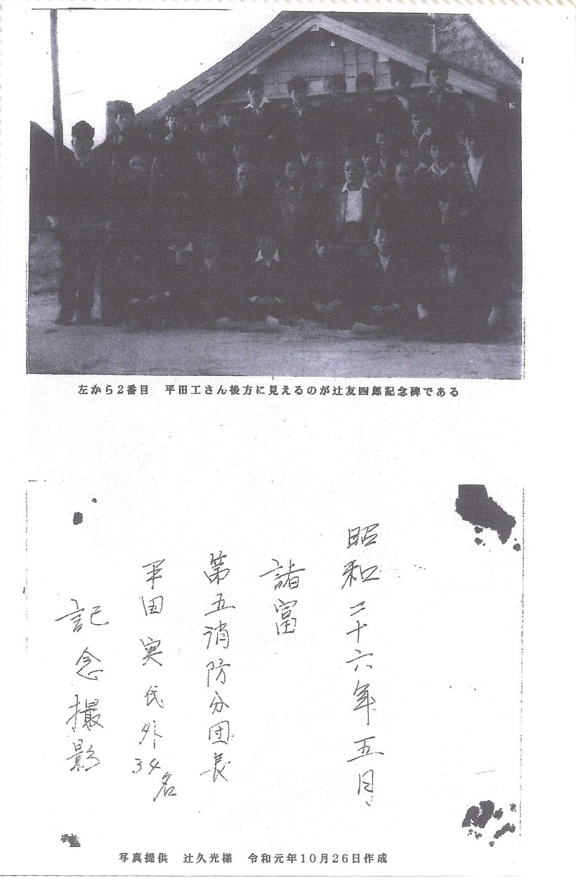 1941年(昭16年)辻友四郎が郷里諸富に消防ポンプを寄贈